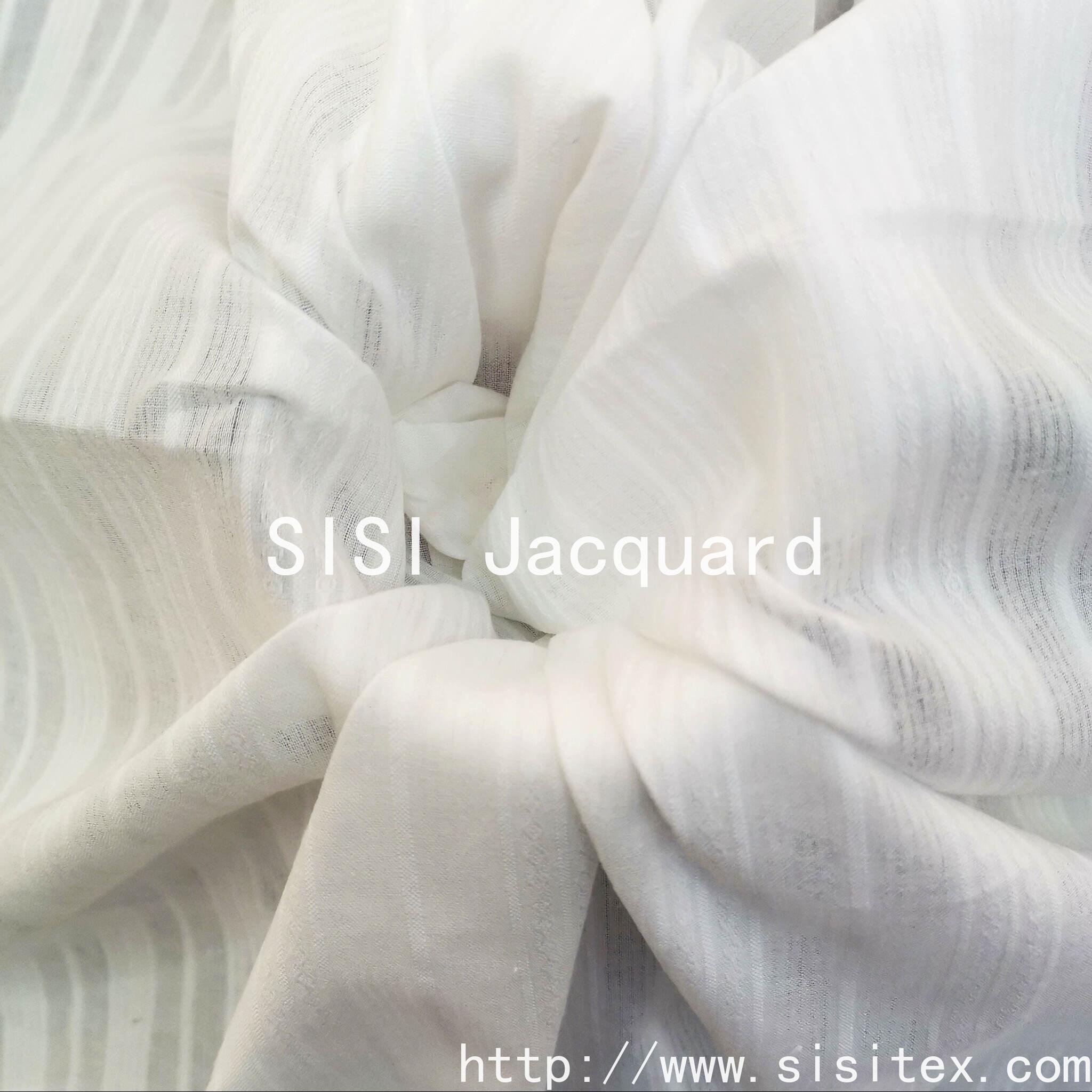 This all-cotton striped jacquard fabric, Sarobu, is woven from high-quality cotton yarn and combines classic stripes with exquisite jacquard techniques, featuring clear textures and distinct layers. The fabric is light and breathable, with a soft and comfortable touch, making it very suitable for making household items or summer clothing. Whether it is used to enhance the taste of your home or to create fashionable outfits, it can meet your dual demands for quality and beauty. Shaoxing Sisi Textile Products Co., Ltd. meticulously crafts to present you with the perfect blend of nature and elegance.