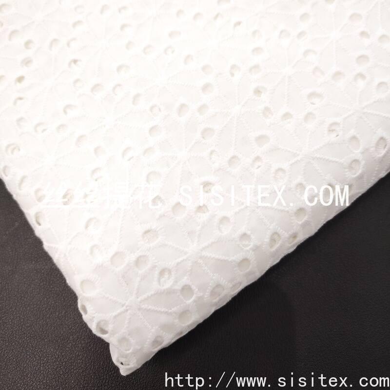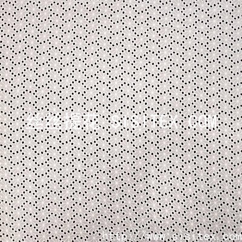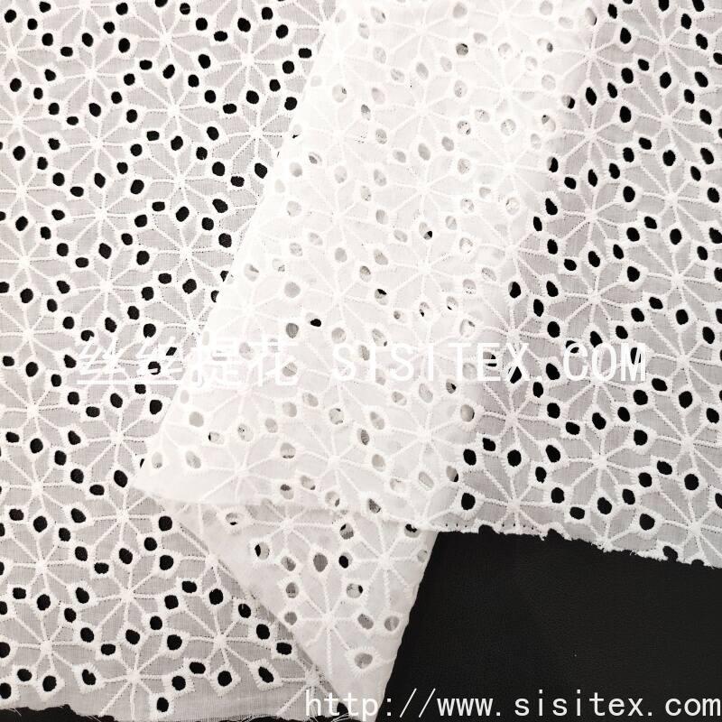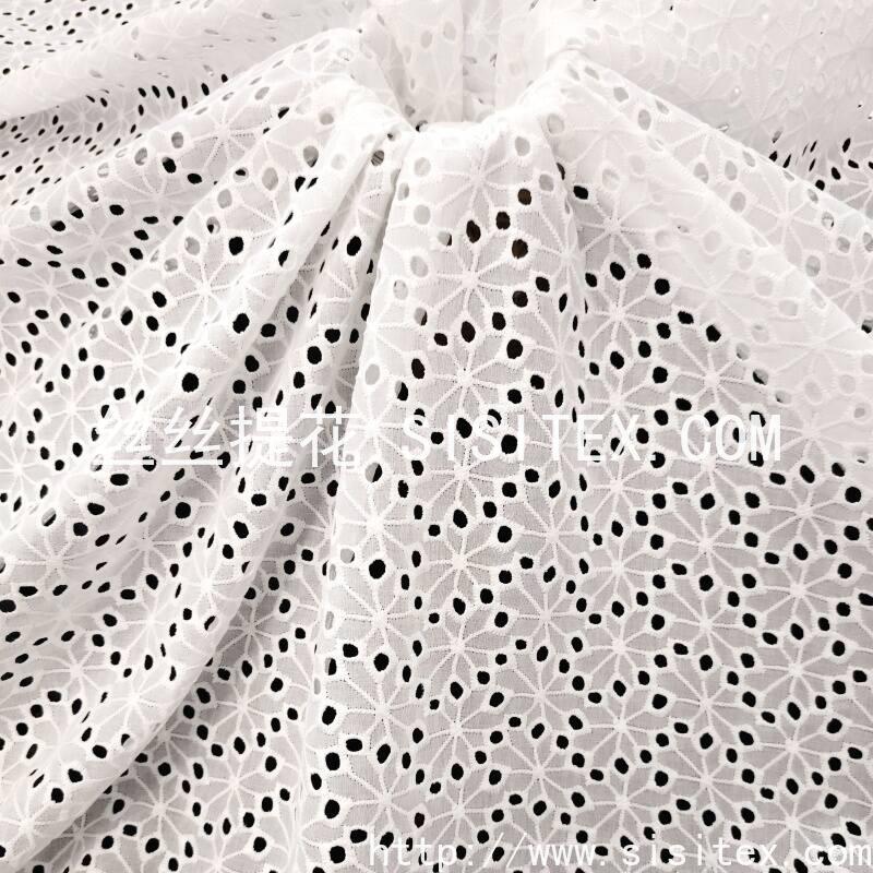 本款面料采用100%精梳棉(JC60×JC60)织造,通过精细镂空绣工艺,在面料上绣制出满幅分布的植物花型打孔图案。绣花孔洞均匀细腻,花型自然柔美,形成通透而不失柔韧的透肌纹理。面料幅宽135cm,质地柔软亲肤,棉纤维带来优越的透气性与吸湿性,整体风格清新文艺,兼具自然呼吸感与手工艺温度,适用于春夏衬衫、连衣裙及雅致家居用品。