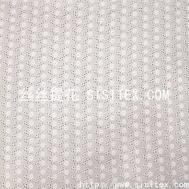 本款面料采用100%精梳棉(JC60×JC60)织造,通过精细镂空绣工艺,绣制出灿烂明媚的太阳花图案。绣花孔洞细腻有序,花型饱满生动,形成通透立体的透肌纹理,宛如阳光穿透花瓣。面料质地柔软亲肤,棉纤维带来优越的透气性与舒适度,整体风格活力清新,充满自然生机与手工艺温度,适合打造春夏连衣裙、衬衫及明媚家居饰品。
