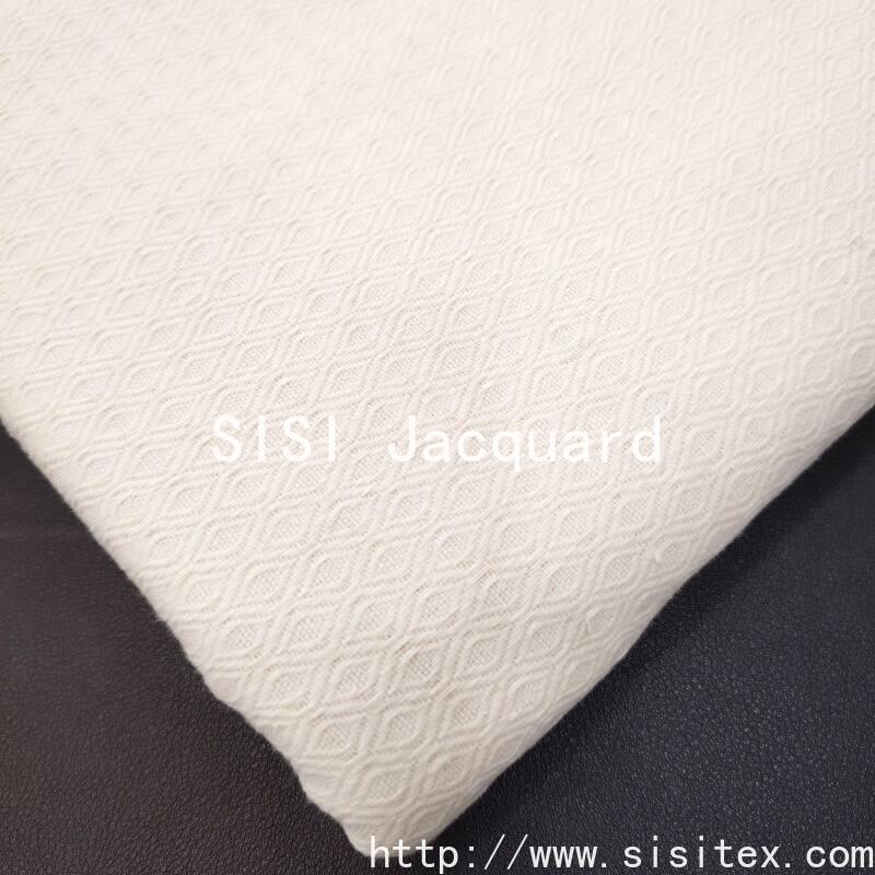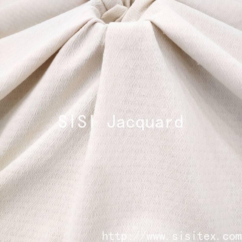 This all-cotton diamond-pattern jacquard fabric is woven with 100% high-quality cotton yarn. It features a classic diamond pattern and achieves clear and regular geometric textures through three-dimensional jacquard weaving. The fabric has a density of 72×44 and a weight of 250g/㎡. It is thick and sturdy, with a full feel and good support. The pure cotton material is skin-friendly and breathable, and the surface diamond pattern is clearly layered with a strong sense of structure. The overall style is stable and classic, combining traditional craftsmanship with modern practical aesthetics. It is suitable for clothing and home products that require a thick texture and durability.